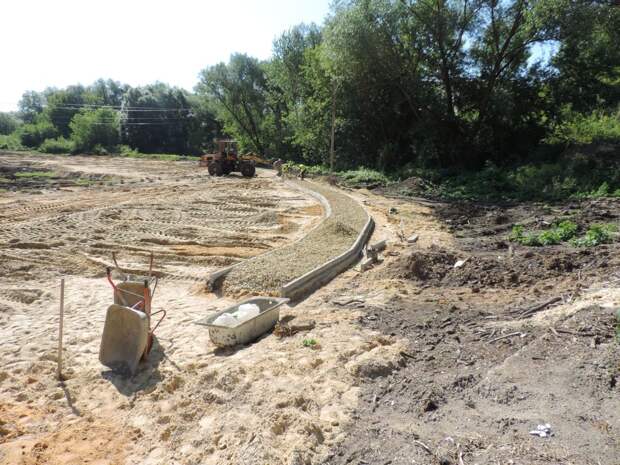 А также детские комплексы и спортивные тренажёры, зоны для барбекю и скейтборда, дорожка и парковка для велосипедов, три вида светильников разной высоты.Победителем конкурса на выполнение работ стало ООО «СБК-ГрупП». При подготовительных работах им было спилено свыше тысячи деревьев и кустарников, завезено более 8 тысяч кубометров песка и щебня. И вот сегодня на площадке, где будет обустроено общественное пространство, появился образ первой дорожки.