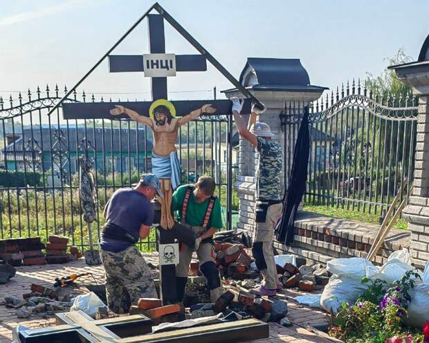 Сначала были демонтированы остатки старого креста, затем мастера залили основу под новый и соорудили голгофу. Право заложить в неё камни предоставили юным прихожанам Свято-Георгиевского храма.«Отец Афанасий выражает большую благодарность трудникам из Владимирской области, которые, несмотря на сильную жару, выполнили работы на высшем уровне. Батюшка встретил помощников, разместил и накормил…Отец Афанасий просит всех неравнодушных помолиться о здравии трудников и помощи Божией в благом деле», – заявили в митрополии.