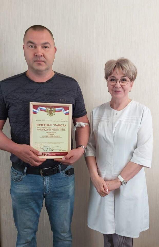 Житель Орловской области Сергей Сёмкин получил награду «Лучший донор России-2023». Он признан лучшим среди 200 участников ХХ Всероссийского конкурса. Об этом сообщили в депздраве Орловской области.