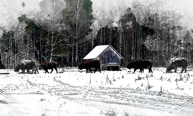 Столовую зуброводы построили для молодняка, так как им часто не достаётся корма.