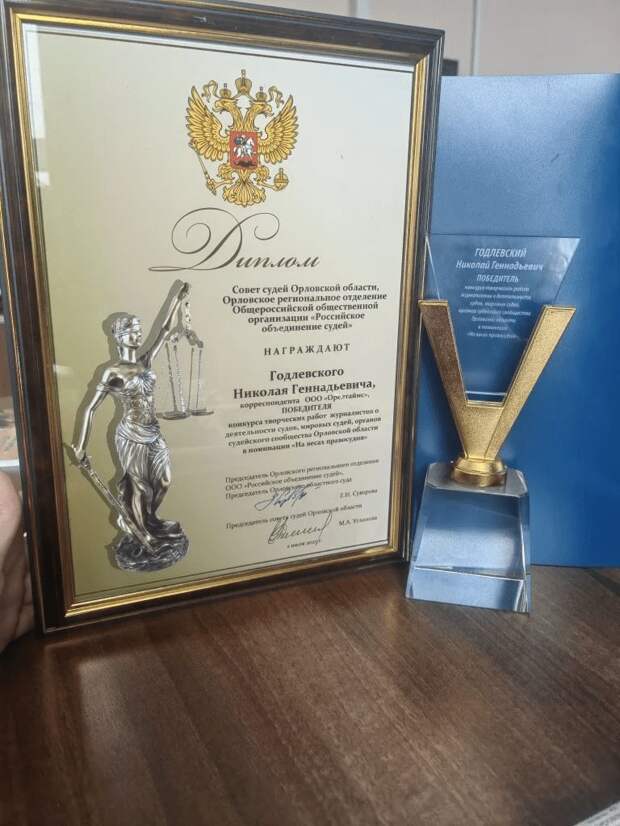 Журналист ОрелТаймс Николай Годлевский стал победителем конкурса творческих работ о деятельности орловских судов, организованный советом судей, Орловским РОООО «Российское объединение судей». Работа нашего коллеги стала лучшей в номинации «На весах правосудия».