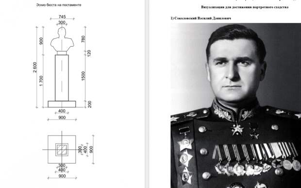 Начальная (максимальная) цена составляет 8,1 млн рублей. Планируется установка пяти бюстов: маршалам Советского Союза Георгию Жукову, Александру Василевскому, Константину Рокоссовскому, Василию Соколовскому, а также генералу армии Маркиану Попову.