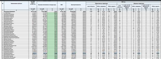 В частности, из запланированных к ремонту в Орловской области 45 общественных территорий, работы были завершены лишь на 19, что составляло 39,6% от плана. Из 91 двора работы завершены на 28 (30,8%).Справедливости ради следует отметить, что по 29 общественным территориям и 63 дворам благоустройство уже ведётся, что отражено в документе. Вместе с тем, вопрос завершения данных работ до конца текущего года пока вызывает вопросы у экспертов.