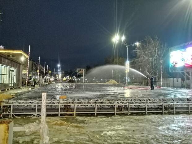 В настоящий момент на площади собраны борта катка, а внутри идёт его засыпка снегом. Кроме того, собран домик для проката коньков. Устанавливает каток одно из сельскохозяйственных предприятий региона за собственный счёт.