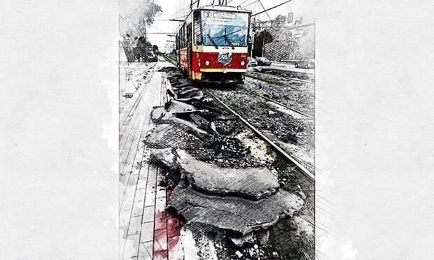 К претензиям орловцев по ремонту ул. Комсомольской добавилась ещё одна: раскуроченный асфальт вокруг трамвайного полотна на остановках.