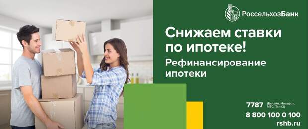 ru.Рефинансирование действующих ипотечных кредитов. Для физ.лиц. Рубли РФ. Срок не более 30 лет. От 8,50%* годовых. От 100 тыс. руб. до 5 млн. руб. включительно, в зависимости от стоимости предоставляемого в залог объекта недвижимости, а также с учетом дополнительных средств на иные цели, размер которых не должен превышать 30% от суммы ипотечного кредита по первоначальному договору. Срок действия решения АО «Россельхозбанк» – 90 календарных дней. Процентные ставки действуют при условии оформления договора личного страхования. При отказе от личного страхования ставка увеличивается на 1 процентный пункт. До регистрации ипотеки в пользу АО «Россельхозбанк» процентная ставка увеличивается на 2 процентных пункта.*В зависимости от условий предоставления кредитного продукта. Реклама, не является офертой. АО «Россельхозбанк». Генеральная лицензия Банка России №3349 (бессрочная) от 12.08.2015