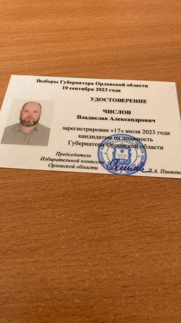Сегодня, 17 июля, состоялось заседание Орловского облизбиркома. На нём руководителю регионального отделения ЛДПР Владиславу Числову вручили удостоверение кандидата на должность губернатора области.