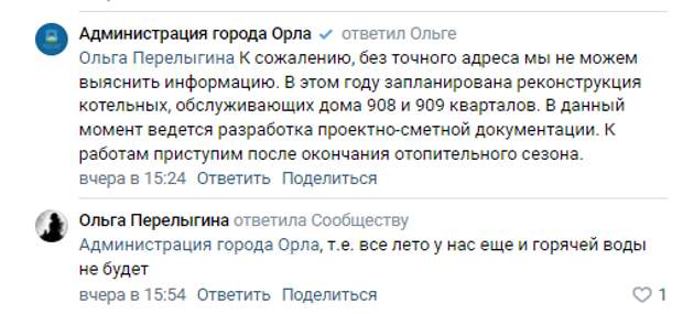 «Новость и обрадовала, и напугала жителей: то есть, всё лето у нас ещё и горячей воды не будет?», — поинтересовалась орловчанка.