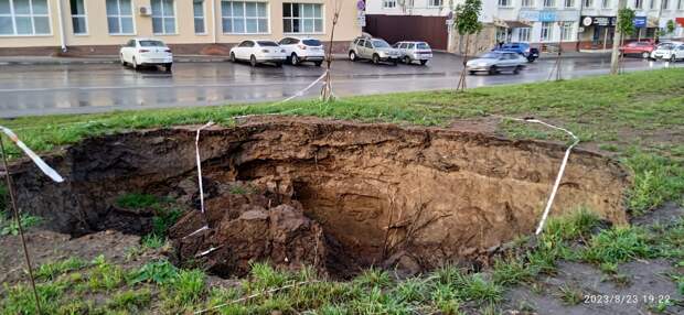 В Орле на ул. Ломоносова образовалась гигантская яма. Как удалось выяснить ОрелТаймс, причиной стало обрушение грунта на ливнёвой канализации. Об этом нашему изданию сообщили в мэрии.