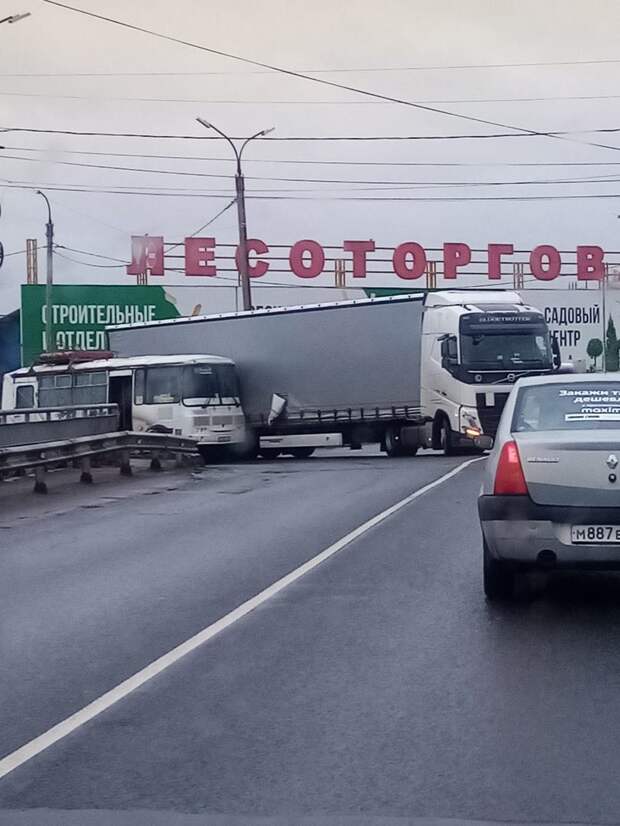 На фотографии отчётливо видно: маршрутку слева прижала большая фура. О пострадавших в данном ДТП пока не сообщается. Официальных комментариев от регионального УГИБДД также не поступало.Напомним, что днём ранее, 20 октября, произошло серьёзное столкновение грузовика и двух легковушек на Московском шоссе. Водитель большегруза не выдержал безопасную дистанцию и врезался в иномарки. В результате ДТП пострадал водитель одной из них.