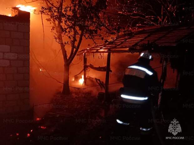 Возгорание произошло сегодня после полуночи. Пламя целиком охватило жилой дом. На месте работали пять сотрудников МЧС и две спецмашины.