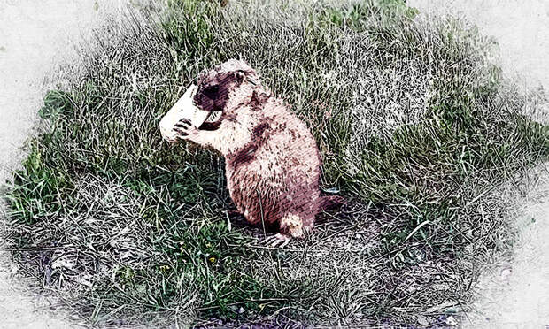 На заднем фоне видно огромное ярко-жёлтое поле подсолнухов.Ещё одного сурка засняли ливенцы с добычей. В лапках с острыми и длинными когтями грызун держал весьма увесистый кусок батона. Выпечка пришлась сурку по вкусу.