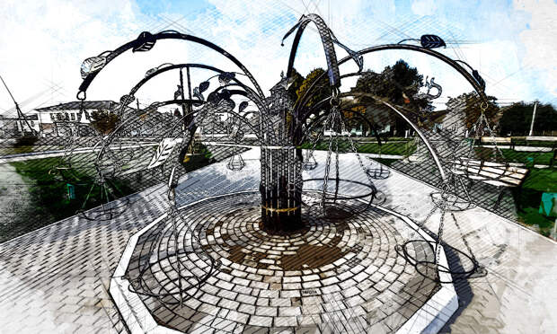 На площади перед школой искусств в Змиёвке местный кузнец Александр Верижников «посадил дерево». Декоративная скульптура Дерево Любви появилась при поддержке администрации Свердловского района, закупившей все необходимые для её создания материалы.