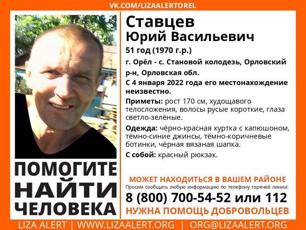 С 4 января 2022 года пропал Юрий Старцев (51 год).