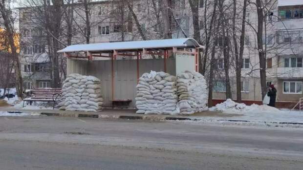 Первые 10 остановок оборудовали мешками с песком, ещё пять — блоками.
