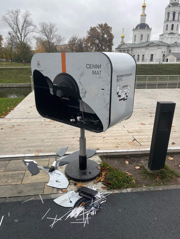 «СелфиМат» в Детском парке города Орла подвергся нападению вандала. Фото разломанной аппаратуры разлетелось по соцсетям.