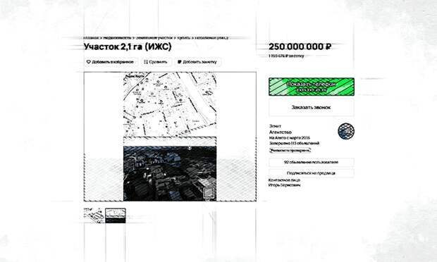 Площадь участка 2,1 га (в аренде до 2055 года). На нём располагается объект незавершённого строительства, находящийся в собственности продавца.