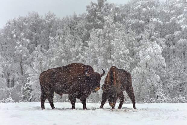 В национальном парке «Орловское Полесье» открылся зимний маршрут к зубрам.