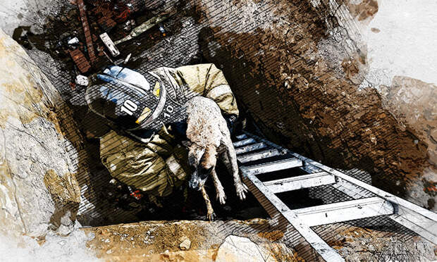 Во Мценске сотрудники МЧС вытащили провалившуюся в глубокий подвал собаку. Животное обессилило и жалобно скулило.