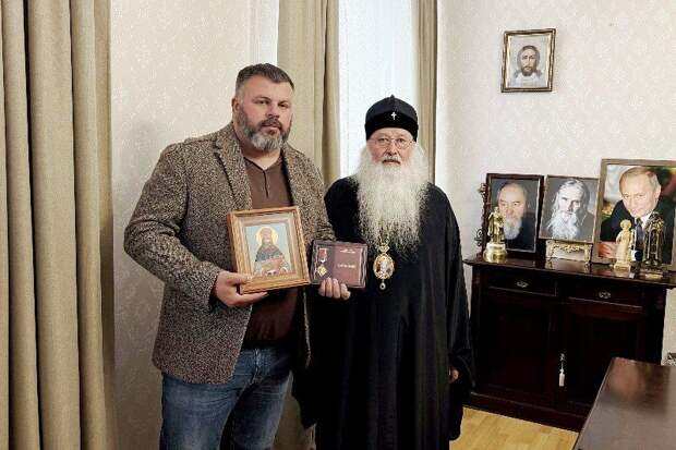 Также архипастырь подарил советнику икону преподобноисповедника Сергия (Сребрянского), который входит в первоначальный состав Собора Орловских святых. Фото Орловской митрополии