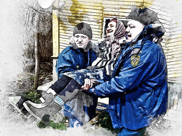 Спасатели оперативно прибыли на место.Они доставили фельдшера к пациентке, на руках перенесли бабушку в пожарную машину и отвезли прямо до кареты «Скорой помощи».
