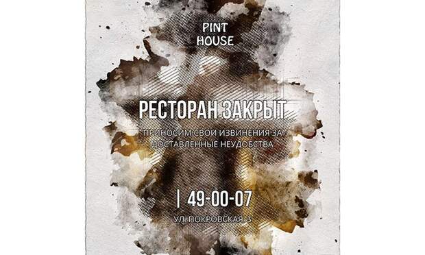 Располагавшийся на улице Покровской, недалеко от ЦУМа, ресторан «Пинт Хаус» (PINT HOUSE) закрывается. Об этом сообщило руководство заведения в социальных сетях.