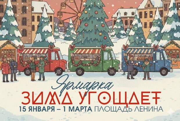 Гастрономическую ярмарку открывали с расчётом на проголодавшихся посетителей катка на площади Ленина. Они должны стать основными покупателями зимних угощений.