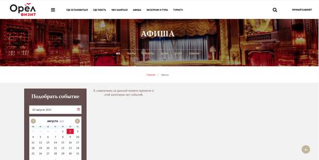 Неоднократно ранее поднимался вопрос о том, что в Орловской области нет своего качественного и постоянно обновляющегося сайта, на котором содержалась бы вся нужная туристам информация. Ещё в сентябре 2024 года руководитель Департамента по проектам развития территорий Андрей Карпов заявил, что некогда популярные туристические порталы «Туризм.Орел» и «Визит.Орёл» были созданы разными органами власти и бизнеса, но перестали обновляться, но у департамента было желание завладеть одним из них, что и произошло в ноябре 2024 года. Домен сайта «Визит. Орёл» оказался у профильного департамента, вот только содержать его, как сам признался Карпов, не на что.