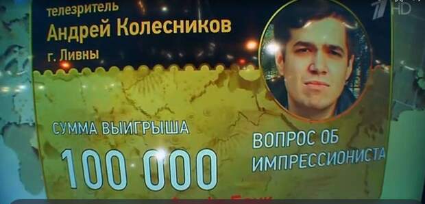 В минувшее воскресенье, 1 октября, ливенец Андрей Колесников выиграл 100 тысяч рублей в телевикторине «Что?Где?Когда?». Удачу мужчине принес вопрос об импрессионистах и веере. Это уже вторая победа в викторине в копилке Андрея Колесникова.
