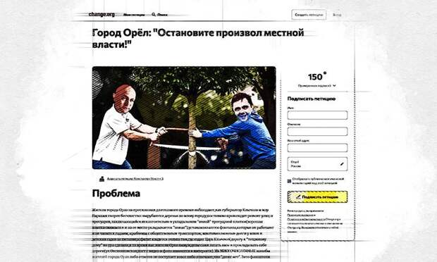 «Жители Орла на протяжении длительного времени наблюдают, как в городе творится бесчинство: вырубаются деревья. На МНОГОЧИСЛЕННЫЕ жалобы жителей либо ответов не поступает вовсе либо отвечают, что «вырубаются аварийные деревья». Все Орловские группы пестрят недовольством граждан, сотнями, тысячами недовольных комментариев, а администрация занимается перекладыванием ответственности. Остановите вырубку деревьев! Помогите спасти Орёл!», — указывается в тексте.