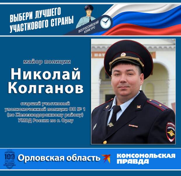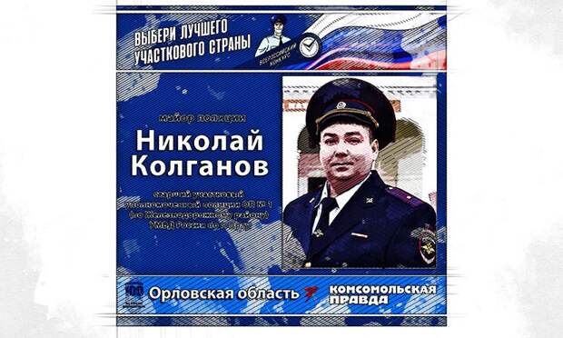 1 ноября стартовал всероссийский этап конкурса «Народный участковый-2023», в котором Орловскую область представляет майор полиции Николай Колганов. Именно за него орловцы отдали свои голоса на региональном этапе конкурса.