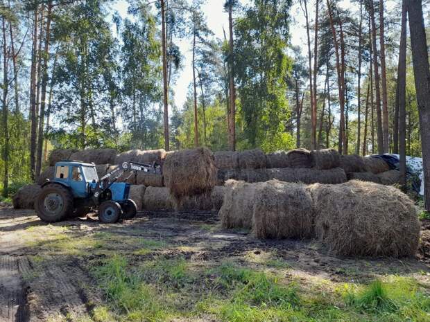 В зоовольерном комплексе, который расположен в Хотынецком районе Орловской области, полным ходом идёт заготовка сена для травоядных животных. Их насчитывается более сотни: зубры, бизоны, верблюды, олени, лани, яки, лошади, пони, ослы и козы.