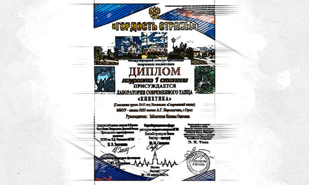 Мероприятие собрало свыше 2000 участников со всей страны. Среди членов жюри именитые хореографы: Егор Дружинин и Эльвира Таха. В итоге коллектив из Орла стал лауреатом I степени фестиваля «Гордость страны» и лауреатом II степени конкурса «Единство России».