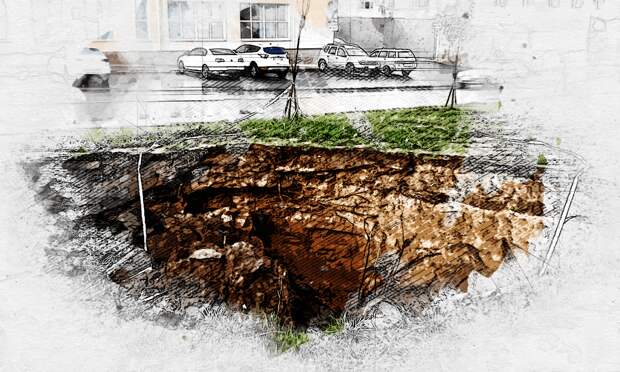 Как сообщают местные жители, они несколько раз пытались добиться от мэрии устранения данного провала, который создаёт не только риск для жизни, но и стремительно захватывает проезжую часть.