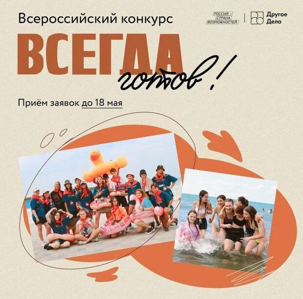 Стартовал 3-й сезон Всероссийского конкурса «Всегда готов!» президентской платформы «Россия – страна возможностей». Для участия приглашаются подростки Орловской области в возрасте от 14 до 17 лет.
