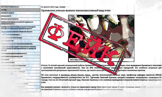 Портал правительства Клычкова рассказал о выведении новой породы пчёл на станции, закрытой уже 15 лет. Бывший директор ГУП «Орловская опытно-пчеловодческая станция РАСХН» Николай Гранкин в интервью «Радио России» поведал, что «новый» тип пчёл имеет генотип пониженной агрессивности. Профессор кафедры зоологии ОГУ им И.