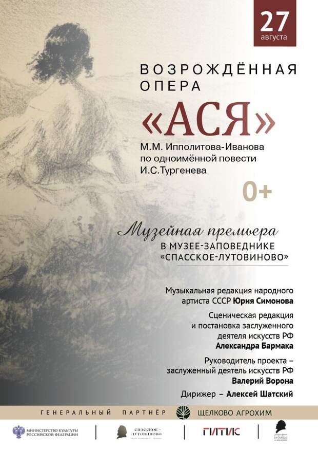 27 августа в Музее-заповеднике И.С. Тургенева «Спасское-Лутовиново» состоится музейная премьера оперы Михаила Ипполитова-Иванова «Ася» по одноимённой пьесе И.С. Тургенева. Эта постановка была забыта почти на столетие.