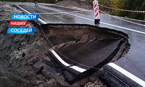 В Брянске обрушился асфальт на съезде с новой дороги неподалеку от кольца возле вокзала. Кусок дороги сполз из-за сильных дождей.