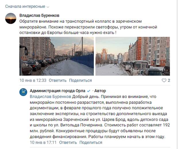 Соответствующую информацию мэрия Орла озвучила в своих социальных сетях в ответ одному из жителей, который показал, какова обстановка в микрорайоне в час пик.