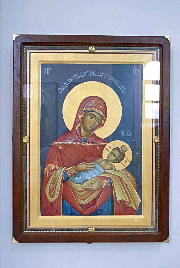 Как сообщили в храме, этот образ является списком с чудотворной иконы XVIII века, которая постоянно пребывает на святой горе Афон в Покровском храме Свято-Пантелеимонова монастыря.