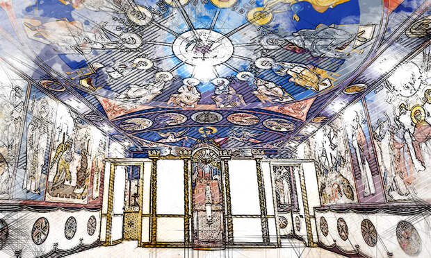 В течение четырёх месяцев над росписью трудились семь мастеров. Крестильный храм — небольшой, лики практически на уровне глаз, все черты и одеяние тщательно прорисованы в строгом соответствии с канонами иконописания.