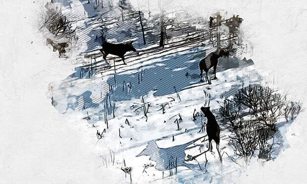 Интересный видеоролик появился в официальной группе полесья ВКонтакте. На видео, снятом с дрона, можно увидеть, как три лося прогуливаются по лесу.