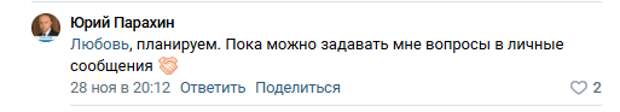 «Планируем. Пока можно задавать мне вопросы в личные сообщения», — ответил Юрий Парахин.