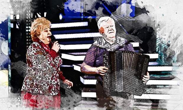 Затем зрителям показали небольшой сюжет о семейной жизни супругов Студенниковых. Даже спустя 45 лет любовь между ними не угасла. Муж играет на баяне, а жена подпевает ему песни.
