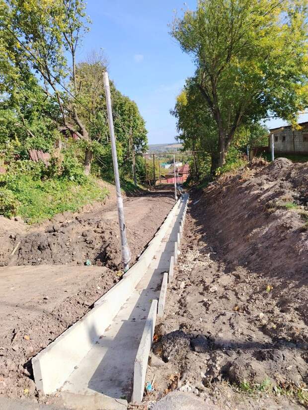 Сегодня здесь уложили 185 бетонных телескопических лотков для ливнёвки, установили специальные парковые фонари. Отрадно отметить, что на ливнёвке устанавливаются специальные камеры для торможения скорости воды. Но странно, что не предусмотрен её слив в реку Нугрь. Теперь вода будет скапливаться на улице перед обувной фабрикой и подмывать здание действующего предприятия.