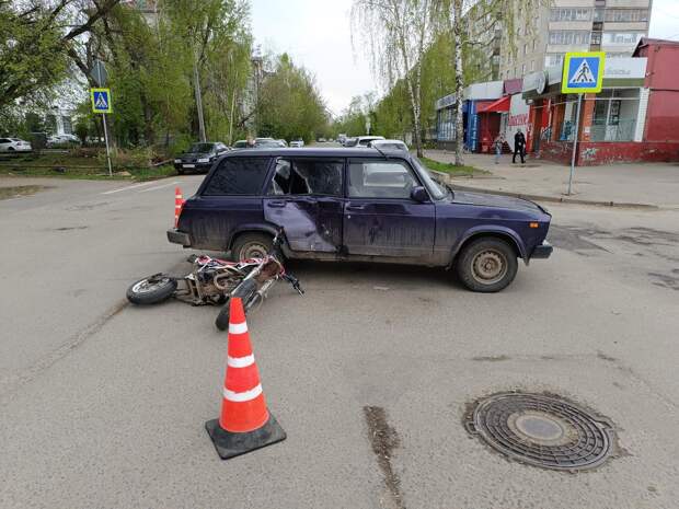 Это – нарушение правил, так как движение на данном отрезке одностороннее. И в районе дома №43 столкнулся с ВАЗ-2104.Удар мотоцикла пришёлся в заднюю правую дверь легковушки. В этот момент там сидел ребёнок, пристёгнутый ремнём безопасности, – девочка 2013 года рождения.