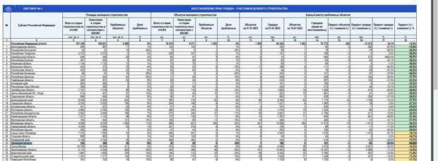 В частности, в Орловской области из 196 обманутых дольщиков, числящихся на начало 2023 года, к 1 июля права были восстановлены лишь у 45 человек.