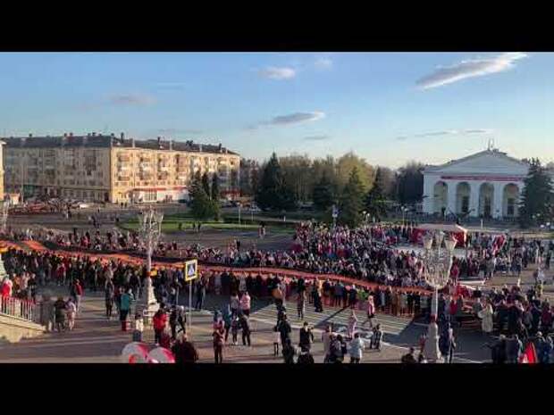 Мероприятие началось с минуты молчания в память о погибших в ходе Великой Отечественной войны. После чего около 350 человек растянули Георгиевскую ленту.