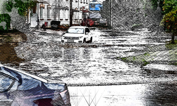 Ливневые канализации вновь не прошли проверку сильным дождём. В Заводском районе автомобилистам и пешеходам приходится почти переплывать огромные потоки воды.