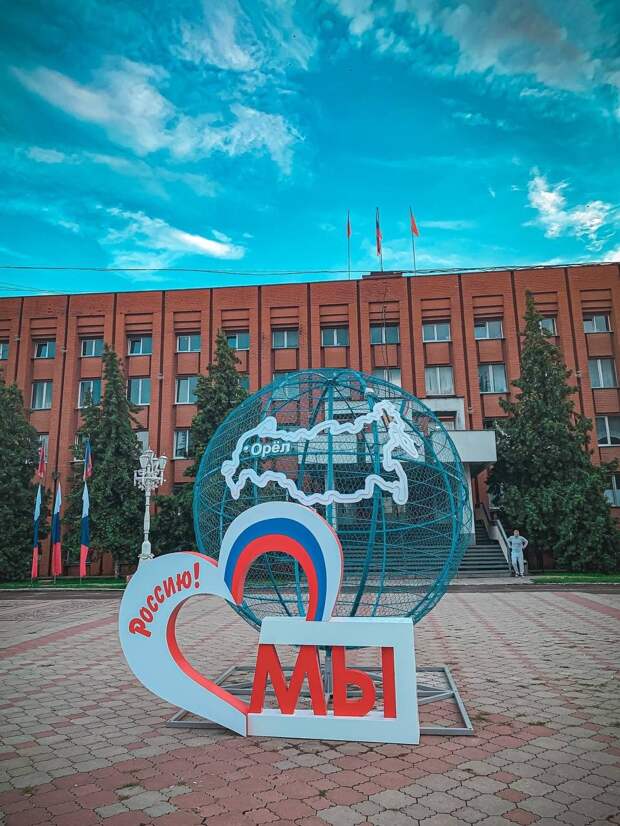 В Орле у администрации Заводского района появилась новая инсталляция. Она представляет из себя глобус, на котором выделена России и отдельно отмечен Орёл. Рядом красуется надпись «Мы любим Россию».